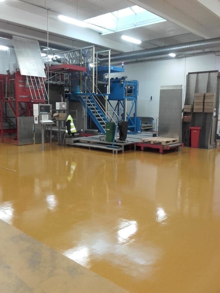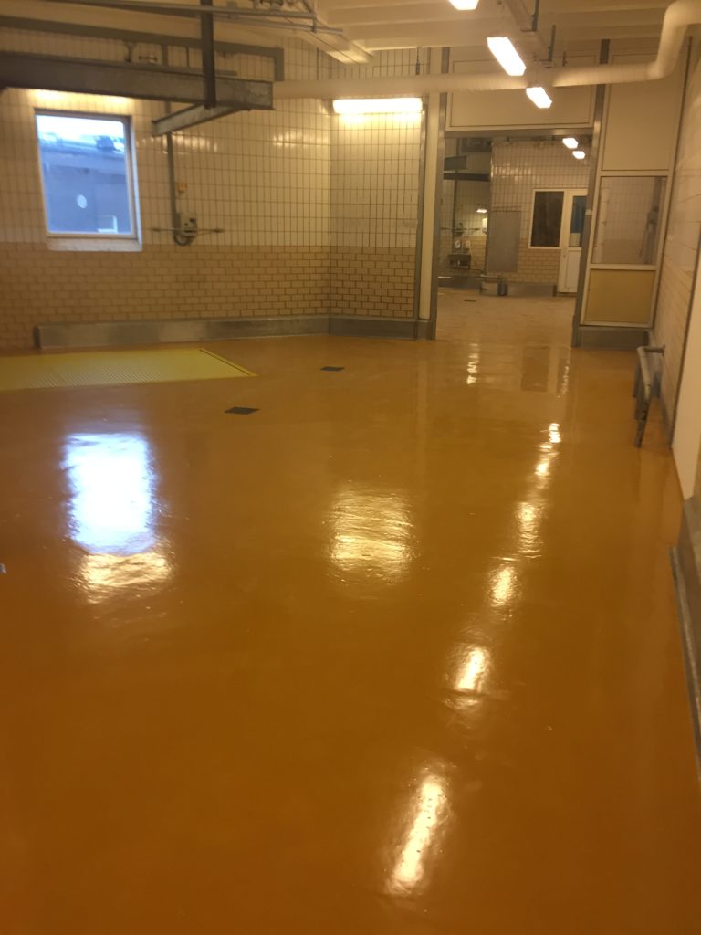 Resultatet blev et pænt, robust og let vedligeholdeligt gulv, der lever op til fødevareindustriens høje standarder.